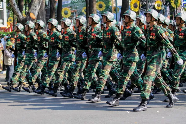 Tiếp đó là cuộc diễu binh, diễu hành của 6.000 người đại diện cho lực lượng vũ trang và các tầng lớp nhân dân Việt Nam cùng hướng về kỷ niệm 40 năm Giải phóng miền Nam, thống nhất đất nước. Lần lượt các khối diễu binh, diễu hành như: khối chiến sĩ giải phóng miền Nam; khối sĩ quan lục quân; khối sĩ quan Phòng không - Không quân; khối Hải quân; khối sĩ quan Biên phòng; khối chiến sĩ bộ binh; khối chiến sĩ đặc công… cùng với các khối nghệ thuật quần chúng. Cuộc diễu binh, diễu hành với lực lượng hùng hậu đã thể hiện truyền thống yêu nước bất khuất, tinh thần chiến đấu anh dũng kiên cường của lực lượng quân đội và các tầng lớp nhân dân.
