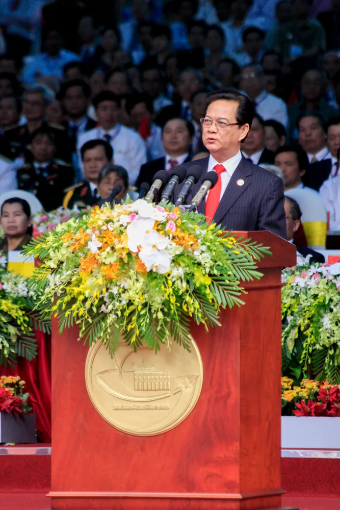 Thủ tướng Nguyễn Tấn Dũng đọc diễn văn kỷ niệm 40 năm thống nhất đất nước - Ảnh: K.Huân.