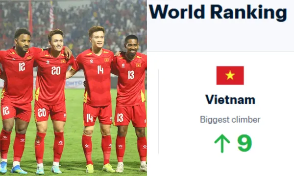 Theo đó, tổ chức túc cầu quyền lực nhất hành tinh xác nhận Việt Nam là đội tuyển có bước thăng tiến mạnh mẽ nhất trên phạm vi toàn cầu. "Những chiến binh sao vàng" đã thu về tổng cộng 36,17 điểm và tăng 9 bậc so với lần cập nhật gần nhất.