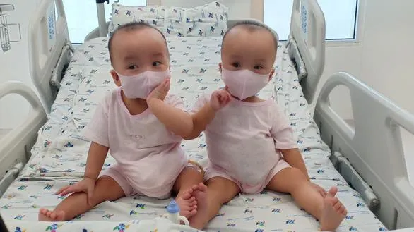 Thực hiện thành công ca đại phẫu thuật tách rời cặp song sinh dính liền Trúc Nhi – Diệu Nhi. Ảnh: Bệnh viện cung cấp.