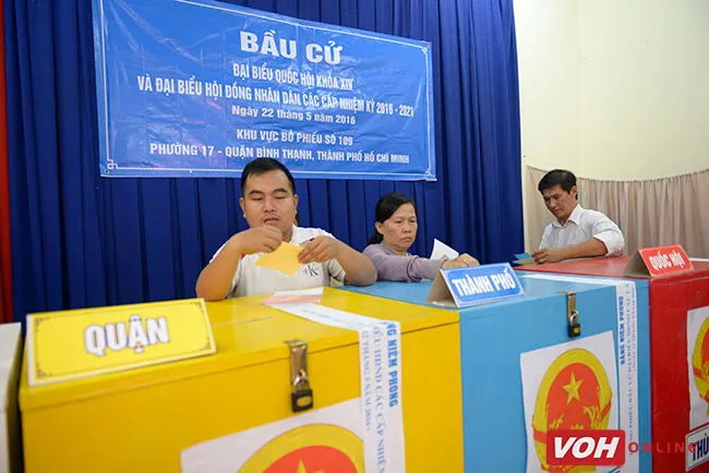 Cử tri bỏ phiếu tại điểm bầu cử 109, P.17, Q.Bình Thạnh, TPHCM (Ảnh: Khiêm Huân)