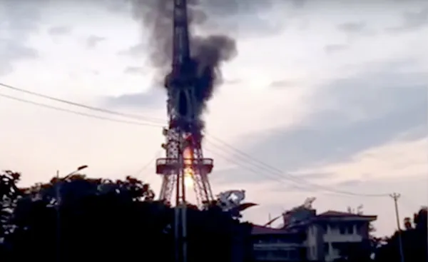 Clip vụ cháy tháp truyền hình do người dân ghi lại tại hiện trường