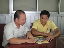 Anh Phan Thanh Vũ (trái) - một trong 21 gương “Thanh niên tiên tiến làm theo lời Bác” - Ảnh: NLĐ.