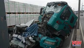 Theo đó, khoảng 13g00 chiều nay (27/9), xe container biển 51C - 575.22 chở theo xe múc, lưu thông qua cầu Phú Mỹ hướng từ quận 7 qua quận 2. Khi vừa đổ dốc cầu (phường Thạnh Mỹ Lợi, quận 2, Tp.HCM), thì bất ngờ tông vào đuôi xe tải biển số 60C - 132.19, chạy cùng chiều phía trước.
