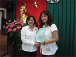 | Trưởng ban Ban Tuyên giáo Thành ủy TPHCM Thân Thị Thư trao quyết định cho đồng chí Hoàng Thị Vĩnh Hảo. |