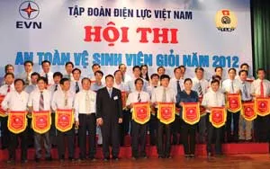Ban Tổ chức trao cờ lưu niệm cho các thí sinh Hội thi - Ảnh: evn |