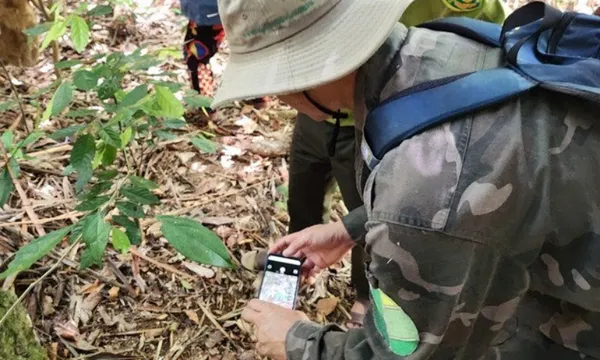 Theo lời kể của bà Vinh, đoàn khảo sát đã chốt tọa độ GPS phục vụ công tác chuyên môn, đánh dấu gốc cây khu vực người dân thấy hổ để nghiên cứu.