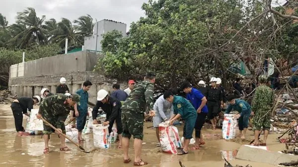 Ngày 7/1, chính quyền H.Tuy An (Phú Yên) huy động các lực lượng hỗ trợ người dân gia cố các điểm sạt lở cũng như hạn chế triều cường xâm thực.