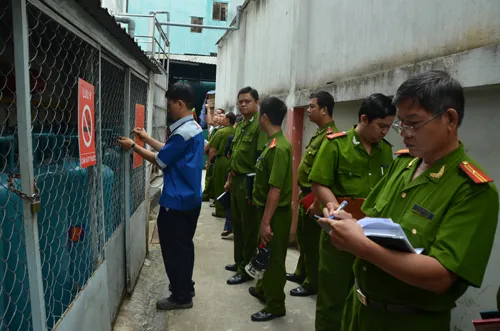 Lực lượng Cảnh sát PCCC kiểm tra tại một doanh nghiệp - Ảnh: PCCC.HCMcity.