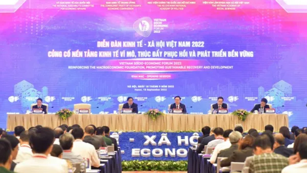 Sáng 18/9, Diễn đàn Kinh tế - Xã hội Việt Nam năm 2022 chủ đề 'Củng cố nền tảng kinh tế vĩ mô, thúc đẩy phục hồi và phát triển bền vững' đã khai mạc trọng thể tại Trung tâm Hội nghị Quốc gia Mỹ Đình.