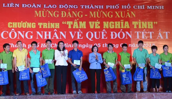 Hoạt động này được thực hiện liên tục trong 7 năm qua vào mỗi dịp Tết nguyên đán do tổ chức công đoàn thành phố thực hiện với tên gọi “Tấm vé nghĩa tình” nhằm hỗ trợ cho đoàn viên công đoàn, công nhân lao động có thành tích xuất sắc trong lao động, nhiều năm liền chưa về quê vì điều kiện kinh tế khó khăn được về quê đón tết cùng gia đình.