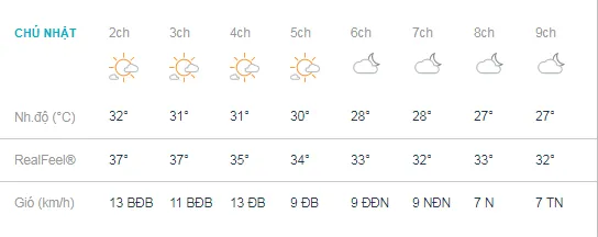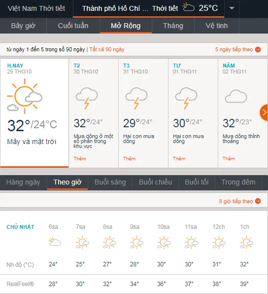 Accuweather dự báo thời tiết buổi chiều theo giờ ngày 29/10 (Ảnh chụp màn hình)
