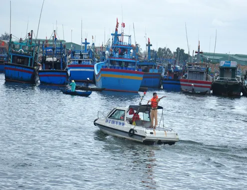 Các tỉnh miền Trung kêu gọi tàu thuyền về bờ hoặc thoát ra khỏi vùng nguy hiểm phòng tránh bão Hagupit. Ảnh: Trí Tín/VNE