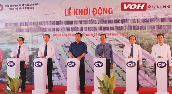 Lãnh đạo TPHCM bấm nút khởi động dự án nút giao thông tại cổng chính ĐHQG TPHCM.