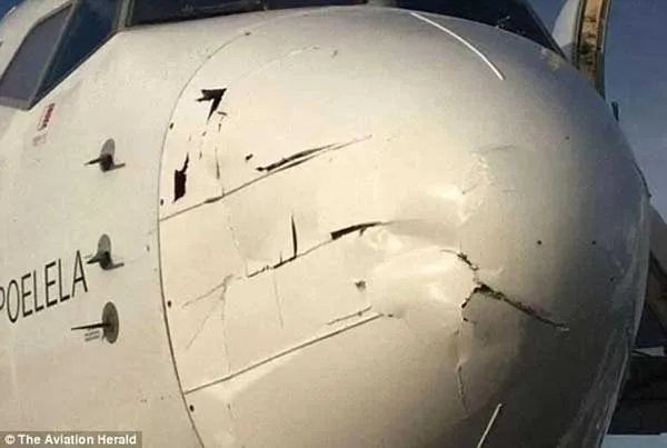Sau khi đáp xuống sân bay Tete Airport tại thành phố Tete- Mozambique thì mới phát hiện đầu máy bay bị móp. Qua xem xét cũng không phát hiện có vết máu hay lông chim dính trên mũi máy bay, nhận định có thể là do máy bay đụng phải Drone (máy bay không người lái).