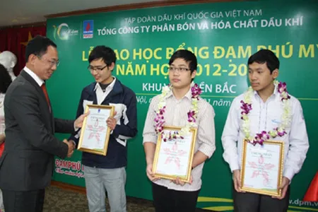 Theo đó, sẽ có 12 suất học bổng "Vinh danh" (trị giá 20 triệu đồng/suất) và 352 suất học bổng "Khuyến khích" (trị giá 5 triệu đồng/suất) dành cho các học sinh, sinh viên có thành tích học tập tốt tại các trường đại học, cao đẳng trên cả nước và theo các tiêu chuẩn được Tổng Công ty Phân bón và Hóa chất Dầu khí công bố.