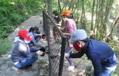 Sinh viên sơn chuồng cho loài rùa núi vàng tại Khu Cứu hộ động vật hoang dã Hòn Me. (Ảnh: WAR)