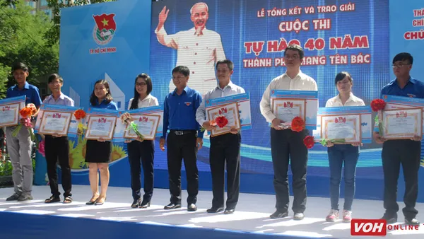 (VOH) - Sáng nay (1/7), tại bảo tàng Thành phố Hồ Chí Minh diễn ra lễ công bố và trao giải cuộc thi “Tự hào 40 năm Thành phố mang tên Bác” do Thành Đoàn TPHCM tổ chức nhằm chào mừng kỉ niệm 40 năm Sài Gòn - Gia Định chính thức mang tên TP.Hồ Chí Minh, thu hút hơn 2.000 thí sinh tham gia.