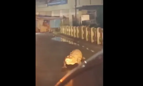Đoạn video clip do một tài xế ghi lại cho thấy, con cá sấu bò trên đường như đang "tham quan" thành phố.