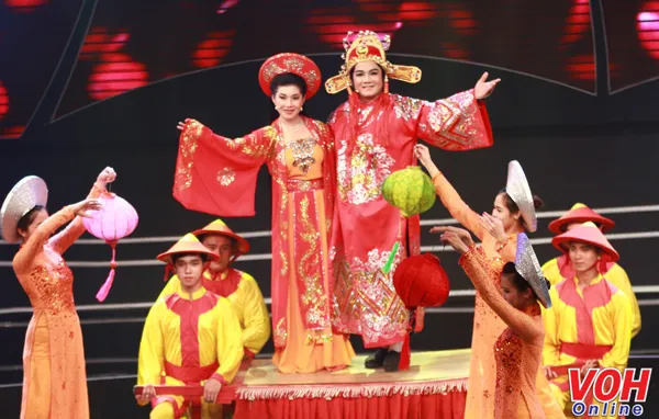 Tuyến Nhung dự thi trong trích đoạn Cầu trăng ai lối hẹn cùng NSUT Lê Tứ