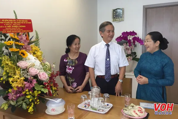 Phó Bí thư Thành ủy TPHCM Võ Thị Dung thăm và chúc mừng Nhà giáo Hồ Thiệu Hùng - nguyên Giám đốc Sở Giáo dục và Đào tạo
