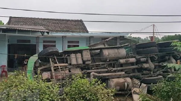 Khi đến km 10+375 (đoạn qua địa phận thôn Nam Hiếu, xã Cam Hiếu, huyện Cam Lộ, tỉnh Quảng Trị) tài xế thắng gấp khiến xe mất lái lật nghiêng vào nhà dân.