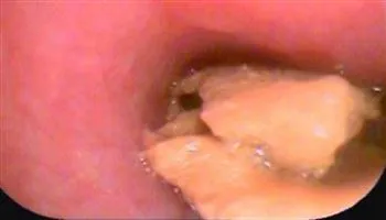 Hình ảnh khối thịt mắc ngang thực quản của người bệnh qua hình ảnh nội soi (Nguồn: Vân Sơn/Dân trí)
