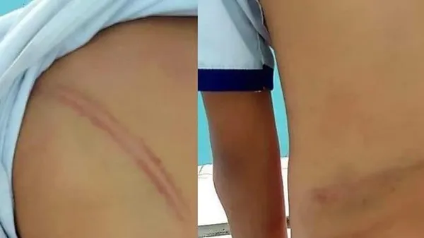Ngày 22/2, thấy bé đến trường với biểu hiện khác ngày thường nên các thầy cô giáo đã kiểm tra và phát hiện trên cơ thể em có hơn 20 vết bầm tím. Nhà trường báo cáo vụ việc với chính quyền địa phương.