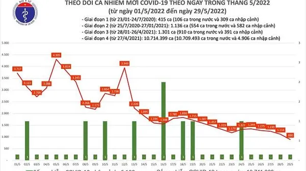 - Từ 17h30 ngày 28/5 đến 17h30 ngày 29/5 ghi nhận 0 ca tử vong.