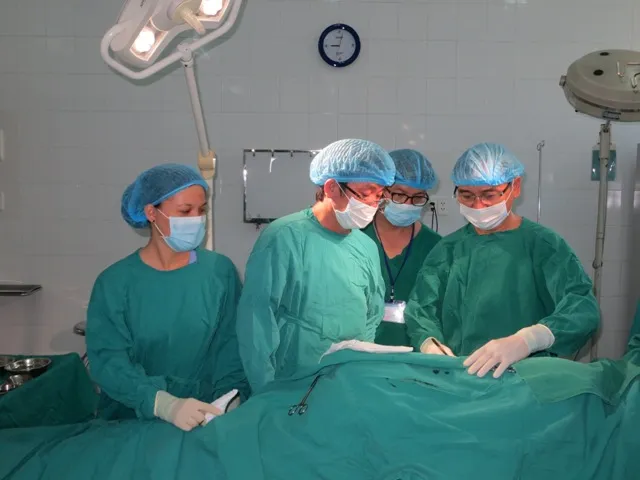 Các bác sĩ đang phẫu thuật cấy ghép da cho bệnh nhân