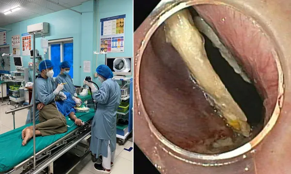 Bệnh nhân được chỉ định chụp X-Quang xác định vị trí mảnh xương cắm vào thực quản và nội soi cấp cứu gắp dị vật. Chỉ trong 2 phút, kíp các bác sĩ và kỹ thuật viên trung tâm tiêu hóa – hô hấp đã gắp thành công mảnh xương gà dài khoảng 2,5cm, 1 đầu cắm sâu vào thành thực quản tại vị trí 1/3 trên.