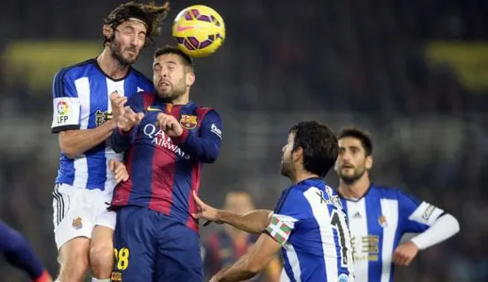Hậu vệ Alba (giữa) tranh bóng cùng cầu thủ Real Sociedad. Ảnh: Reuters