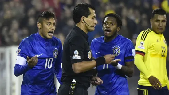 Sau khi tiếng còi kết thúc trận Brazil thua Colombia 0-1 cất lên, vì thất vọng, Neymar có hành động phi thể thao: sút bóng vào người hậu vệ Colombia Pablo Armero, húc đầu vào một cầu thủ khác. Ngay lập tức tiền đạo Carlos Bacca của Colombia có hành vì trả đũa. Và trọng tài chính đã rút thẻ đỏ phạt Neymar và Bacca. Hôm thứ Sáu rồi, Liên đoàn bóng đá Nam Mỹ ban hành án phạt treo giò Neymar 4 trận và phạt tiền 10 ngàn USD vì những hành vi trên.