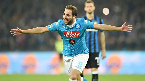 Higuain ăn mừng bàn thắng vào lưới Iner Milan.