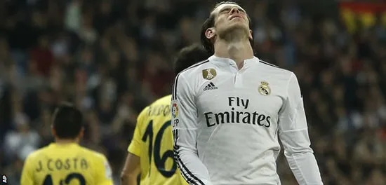 Bale thất vọng vì bỏ lỡ cơ hội ghi bàn vào lưới Villarreal. Ảnh: AP