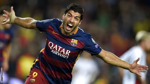 Tiền đạo Suarez ăn mừng bàn thắng quyết định cho Barcelona ở phút 82.