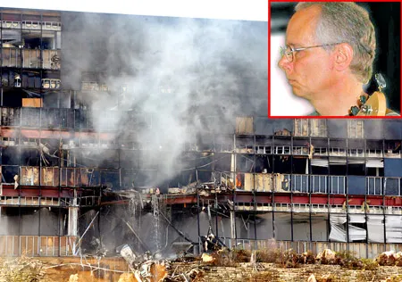 Stack (ảnh nhỏ) và hiện trường tòa nhà IRS ở Austin sau khi bị máy bay của Stack đâm vào. |