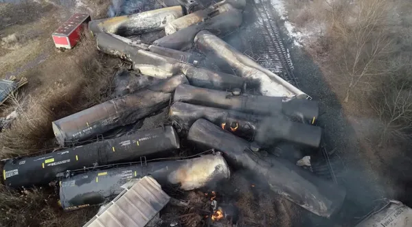 Theo truyền thông Mỹ, một trong những hóa chất mà đoàn tàu trên vận chuyển là vinyl chloride, được Cơ quan Bảo vệ Môi trường Mỹ mô tả là rất dễ bắt lửa và gây ung thư. Khi bị đốt cháy, hóa chất này biến đổi thành các hợp chất độc hại khác. Cho đến nay đã hơn một tháng kể từ khi xảy ra tai nạn, nhưng công tác khắc phục hậu quả hiện vẫn chưa hoàn thành.