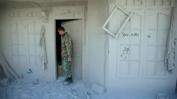 Tro bụi phủ trắng các ngôi làng. (Ảnh: Dailymail)