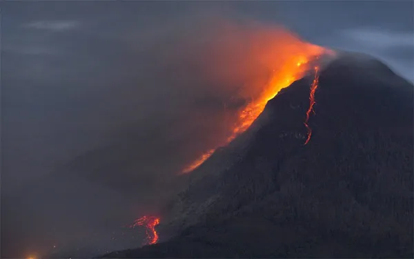 Núi lửa Sinabung phun trào lần đầu tiên vào năm 2010, sau 400 năm ngừng hoạt động. (Ảnh: BBC)