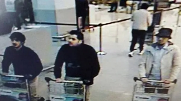 Brahim el-Bakraoui (ở giữa) là kẻ đánh bom tại sân bay Zaventem. Ảnh BBC.