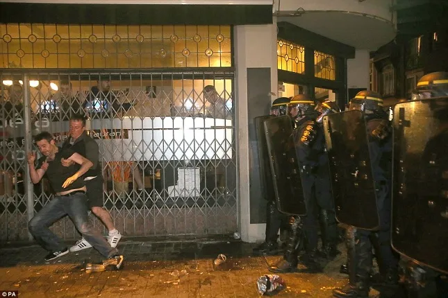 Ngay sau trận thua của Nga tối qua, Cảnh sát chống bạo động Pháp lại phải dùng dùi cui và hơi cay để giải tán đám đông cổ động viên Anh khi họ vừa ra khỏi một quán bar ở Lille và la hét "chúng tôi ghét Nga” – một cách ăn mừng thất bại không mấy lịch sự.