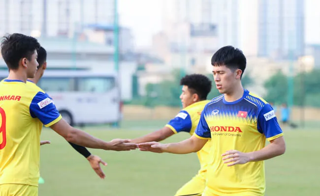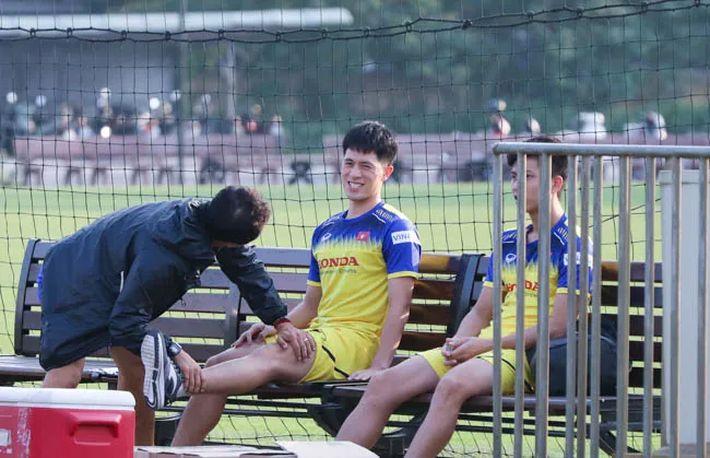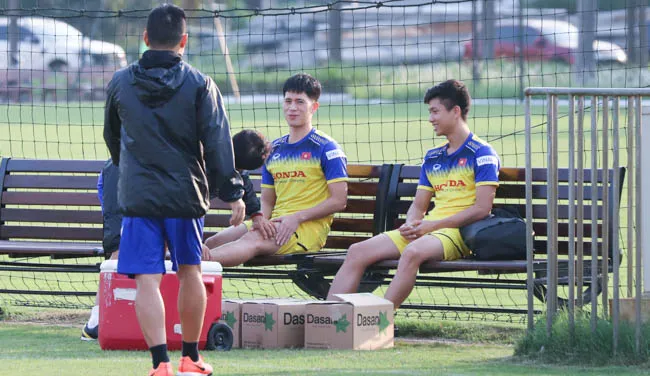 Dù đang trong quá trình điều trị chấn thương nhưng Đình Trọng và Phan Văn Đức vẫn được HLV Park Hang Seo điền tên vào danh sách tập trung cùng ĐT Việt Nam. Bộ đôi tuyển thủ vẫn ra sân cùng cả đội, thậm chí Đình Trọng cho thấy sự hồi phục nhanh chóng khi đã có thể tập luyện với bóng.