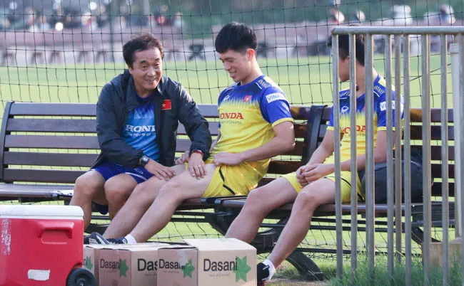 Trước buổi tập, trợ lý Lee Young Jin kiểm tra tình hình hồi phục của Đình Trọng.