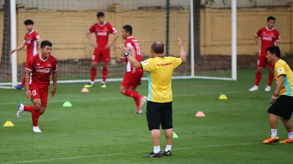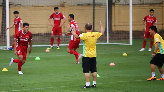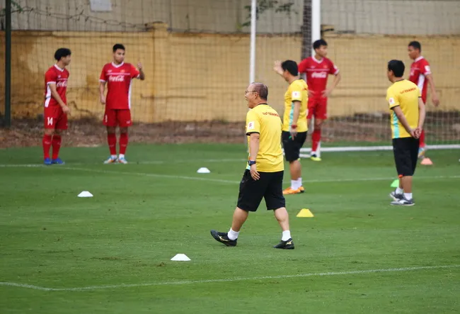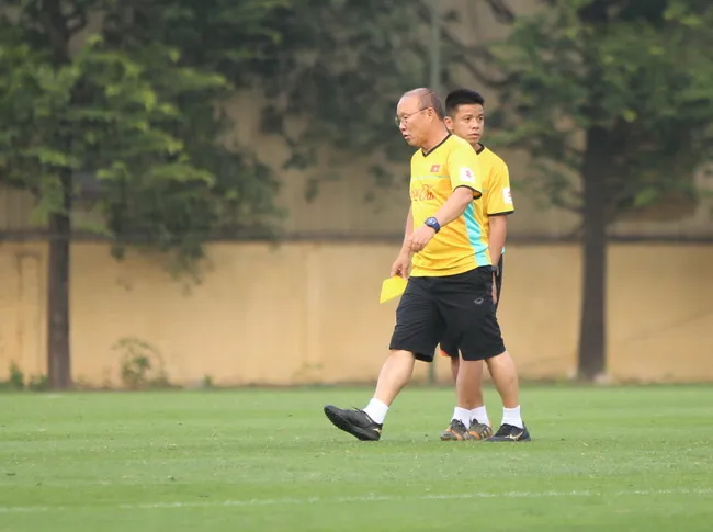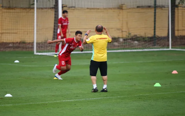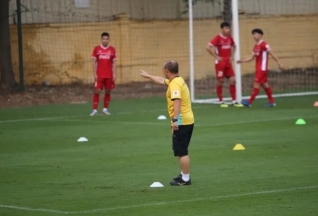 Trong buổi tập chiều 12/11, thầy Park tương đối căng thẳng dù các học trò vẫn giữ tâm trạng thoải mái. Không chỉ nhiều lần to tiếng với các trợ lý trong việc sắp xếp dụng cụ tập luyện, chiến lược gia người Hàn Quốc cũng nổi nóng với một số học trò trong bài tập bứt tốc.