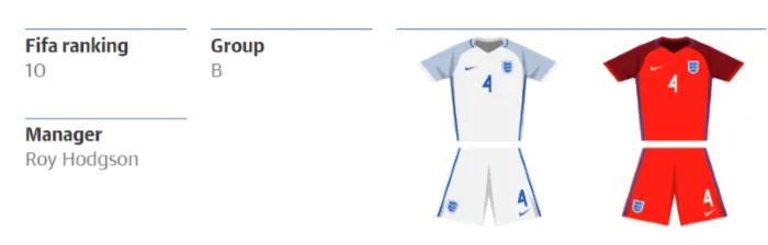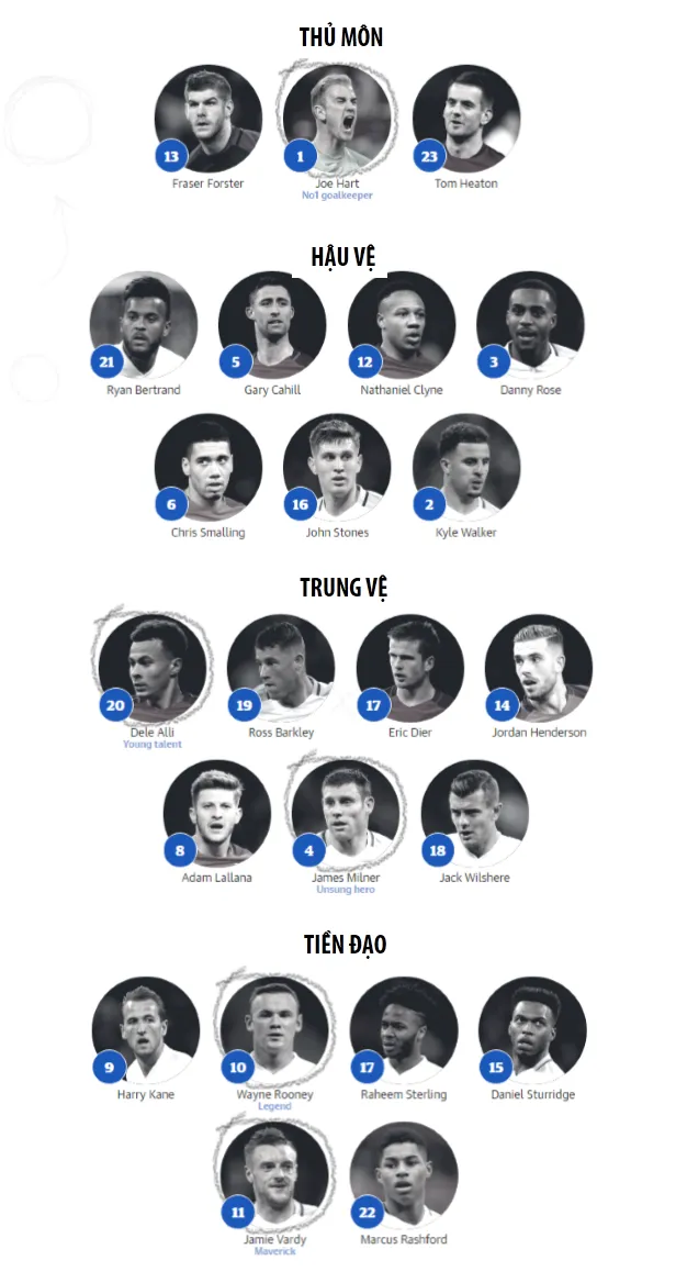Đây là một đội tuyển với nhiều cầu thủ trẻ năng động, đặc biệt là hai cầu thủ Dele Alli và Harry Kane có khả năng làm nên sự khác biệt trong mùa hè này.