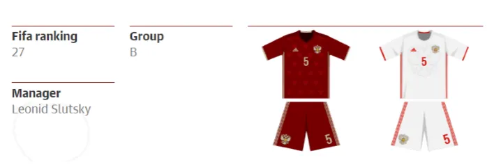 Nga đã chia tay chiến lược gia người Italy Fabio Capello trong tháng 7/2015 sau chuỗi thành tích nghèo nàn của đội tuyển sau đó thay thế bằng huấn luyện Leonid Slutsky với hi vọng sẽ vực dậy tuyển quốc gia trong giải đấu lớn. Leonid Slutsky thường sử dụng đội hình 4-2-3-1 - và được đánh giá là người quản lý tốt hơn nhiều.