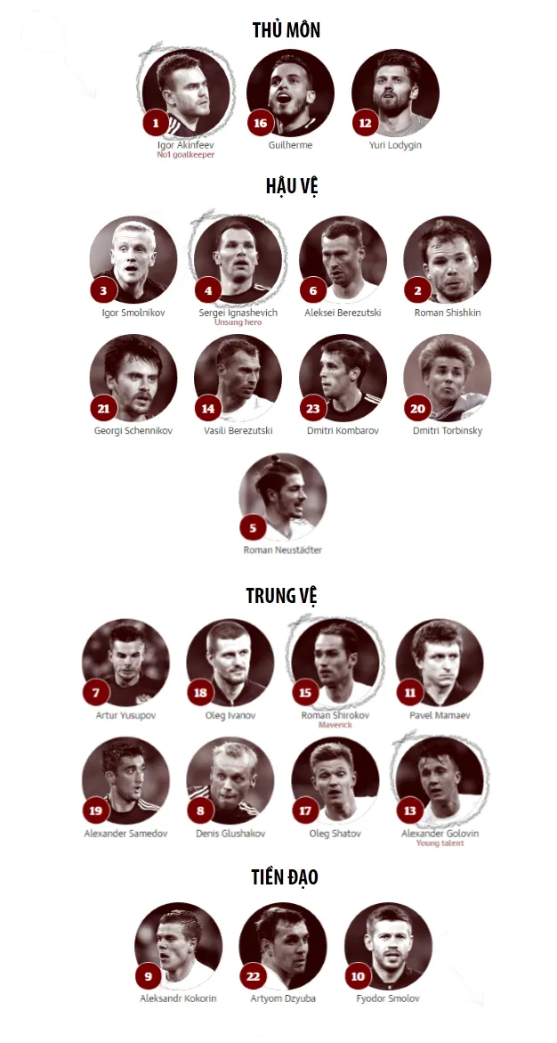 Đội bóng có được tốc độ cao trên hai cánh- Aleksandr Kerzhakov, Artyom Dzyuba và Fyodor Smolov và dễ dàng tấn công ở hàng tiền đạo.