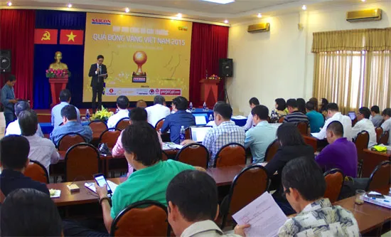 Buổi họp báo cuộc đua danh hiệu Quả bóng vàng Việt Nam 2015.