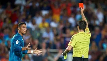 Trong trận Siêu cúp lượt đi Tây Ban Nha hôm 13/8/2017, Ronaldo bị trọng tài Ricardo De Burgos Bengoetxea phạt thẻ đỏ. Cho rằng bị phạt nặng, Ronaldo đã phản ứng và có lời lẽ không đẹp và đẩy trọng tài, vì thế tuyển thủ Bồ Đào Nha bị Liên đoàn bóng đá Tây Ban Nha phạt treo giò 5 trận và nộp phạt 3,005 euro.